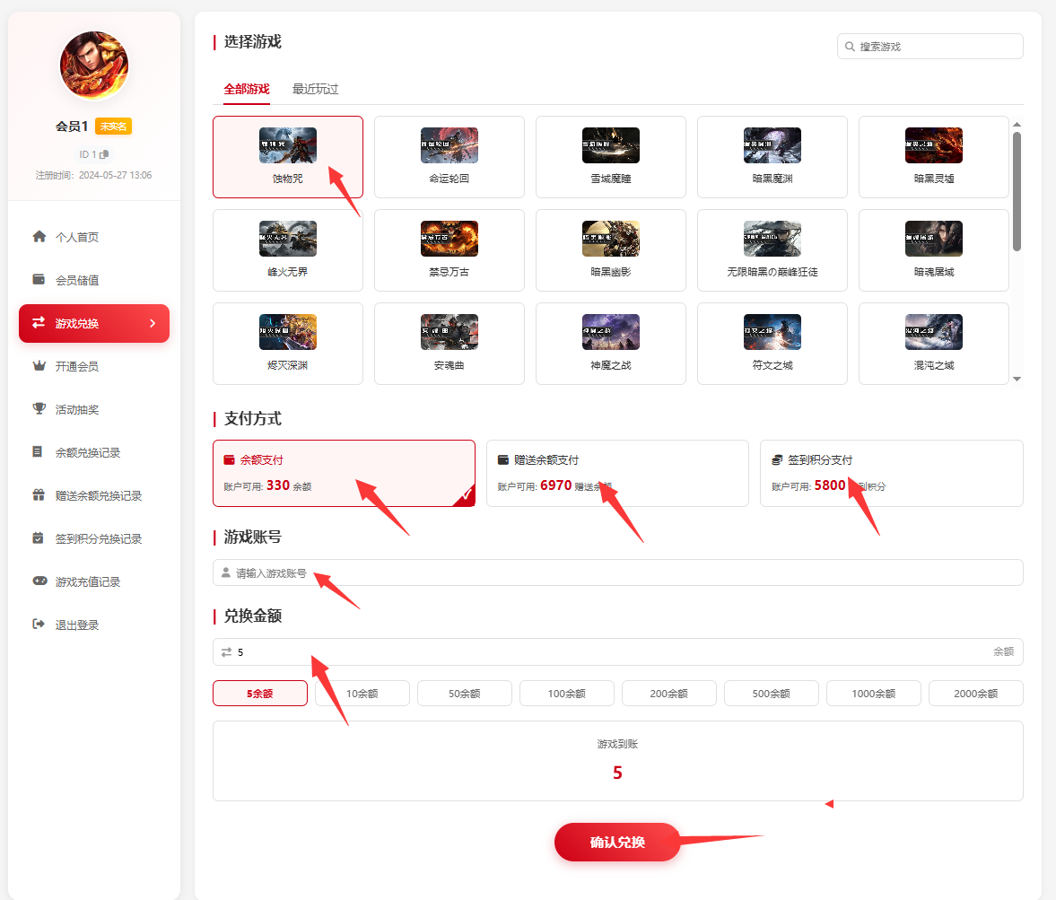 1,首页选择选择【游戏兑换】